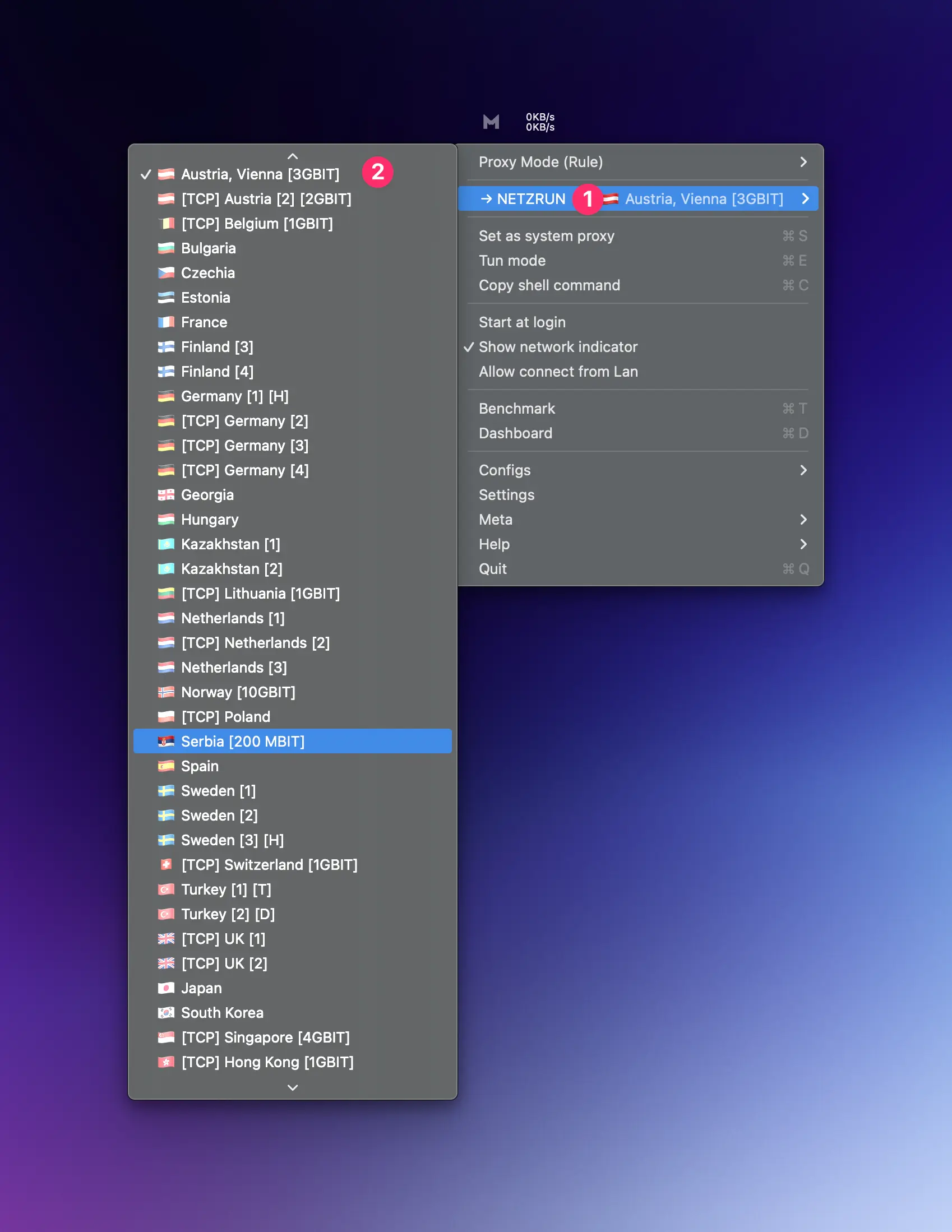 -> NETZRUN - Выберите сервер, к которому хотите подключиться и нажмите на него один раз (рядом с ним появится галочка︎)