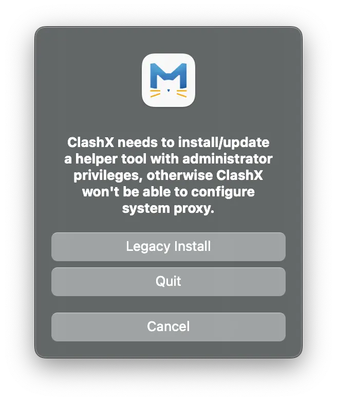 буквы M", нажмите на нее, чтобы открыть менюClashX Meta