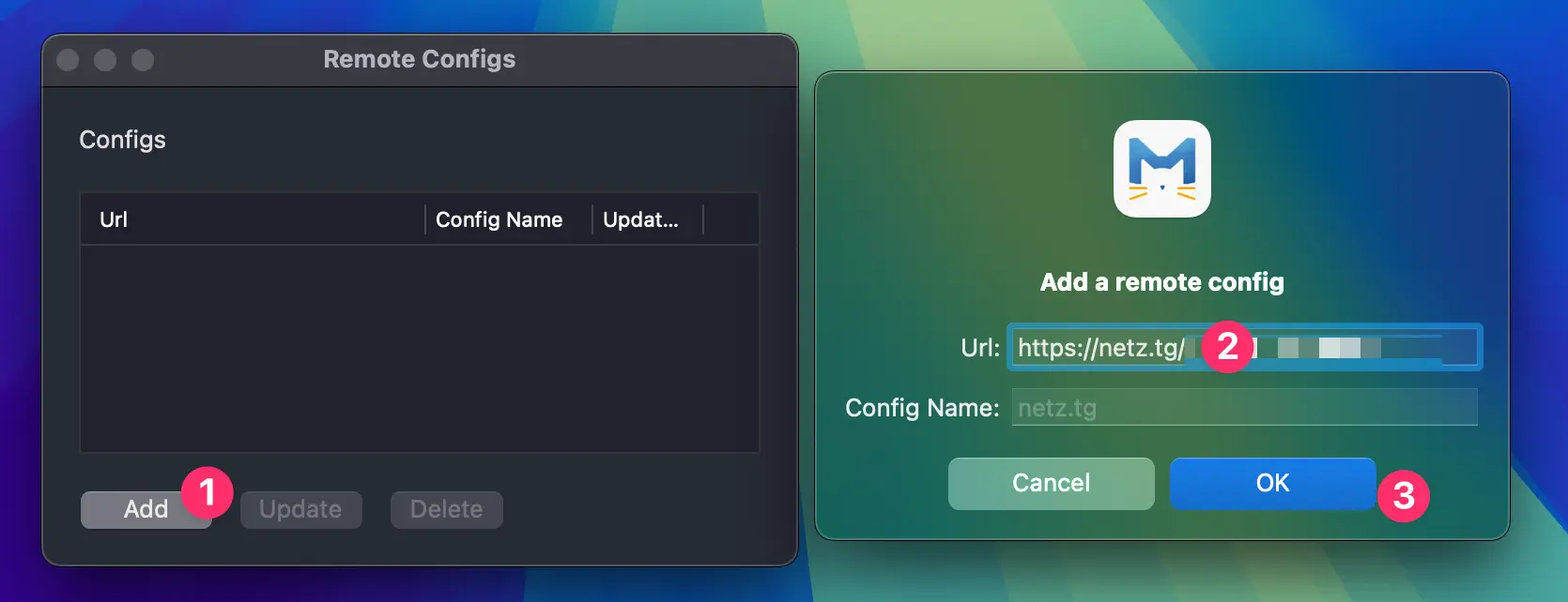 Вместо этого шага вы можете в боте, в разделе Профиль нажать на кнопку "Открыть в браузере", затем пролистайте в самый низ и нажмите на Добавить в ClashX Pro