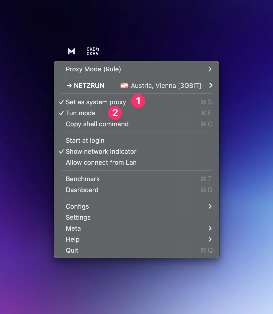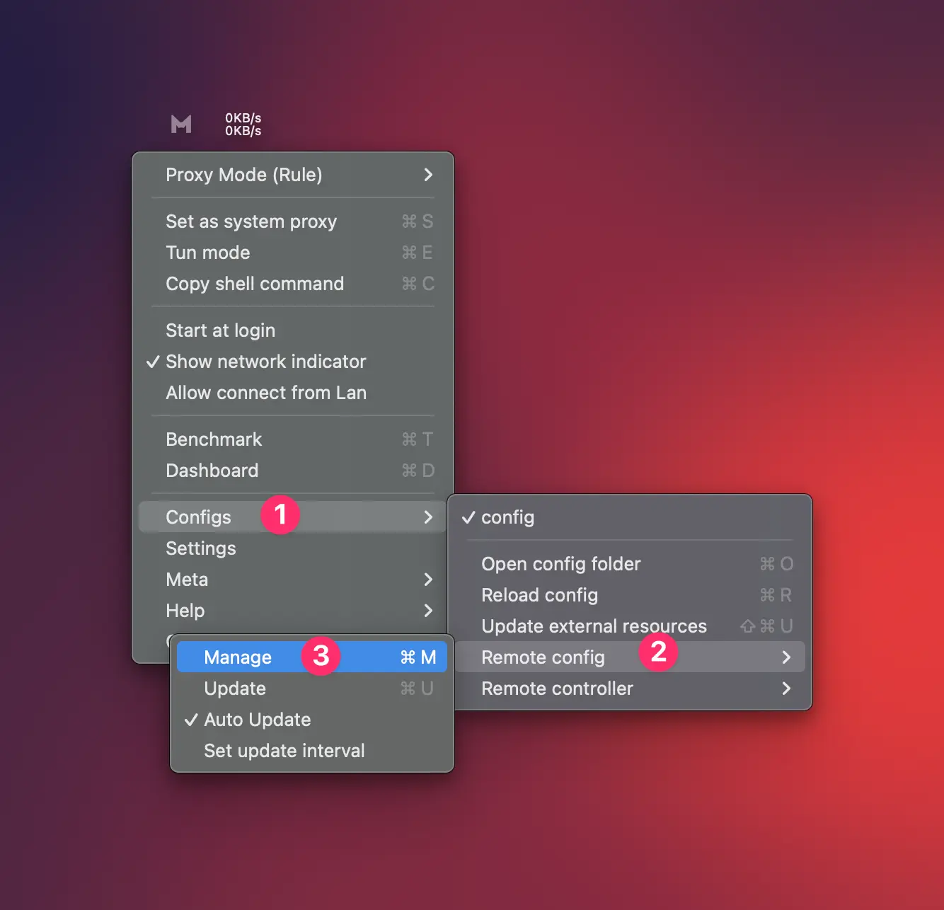 буквы M", нажмите на нее, чтобы открыть менюClashX Meta
